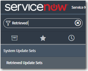 4. In the search results, click Retrieved Update Sets. The Retrieved Update Sets page opens.