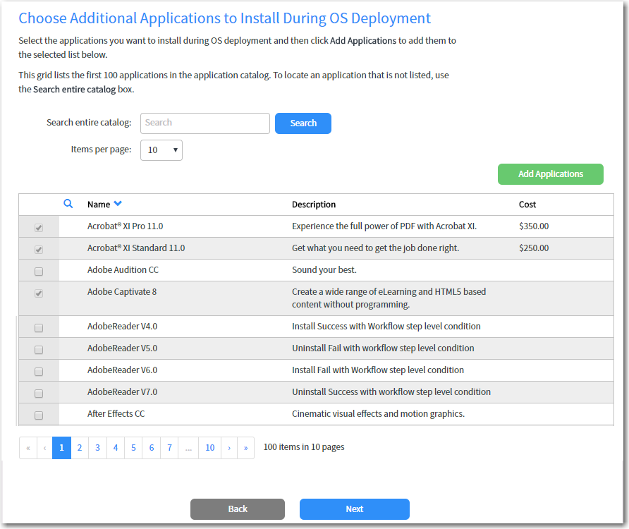 13. Select the applications that you want to migrate and then click Next. The Choose Additional Applications to Install During OS Deployment panel opens. Applications that have already been selected in previous panels are already selected and cannot be unselected.
