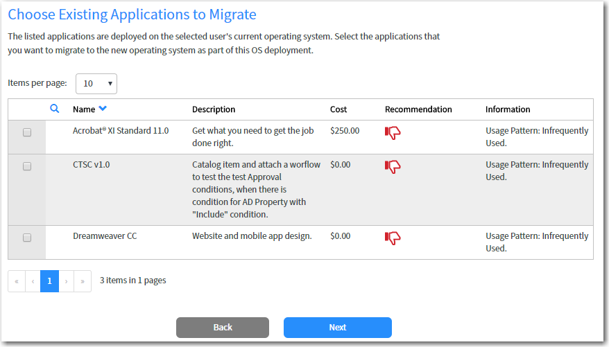 12. Search for an existing computer (if desired), and then click Next. The Choose Existing Applications to Migrate panel opens, listing the applications installed on the specified existing computer.
