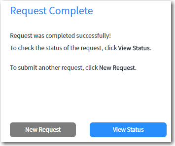 16. Click Submit Request. The request is submitted and the Request Complete panel opens.