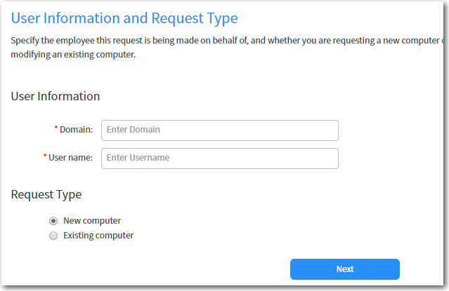 To use the Employee App Provision Request wizard to update the operating system and/or applications on an existing computer, perform the following steps: